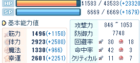 それとは別に小型ロボで幸運2400超えたので体力に回しても…と思ったらもう防具に1OPくらいしかないので別の方法を考えてます。